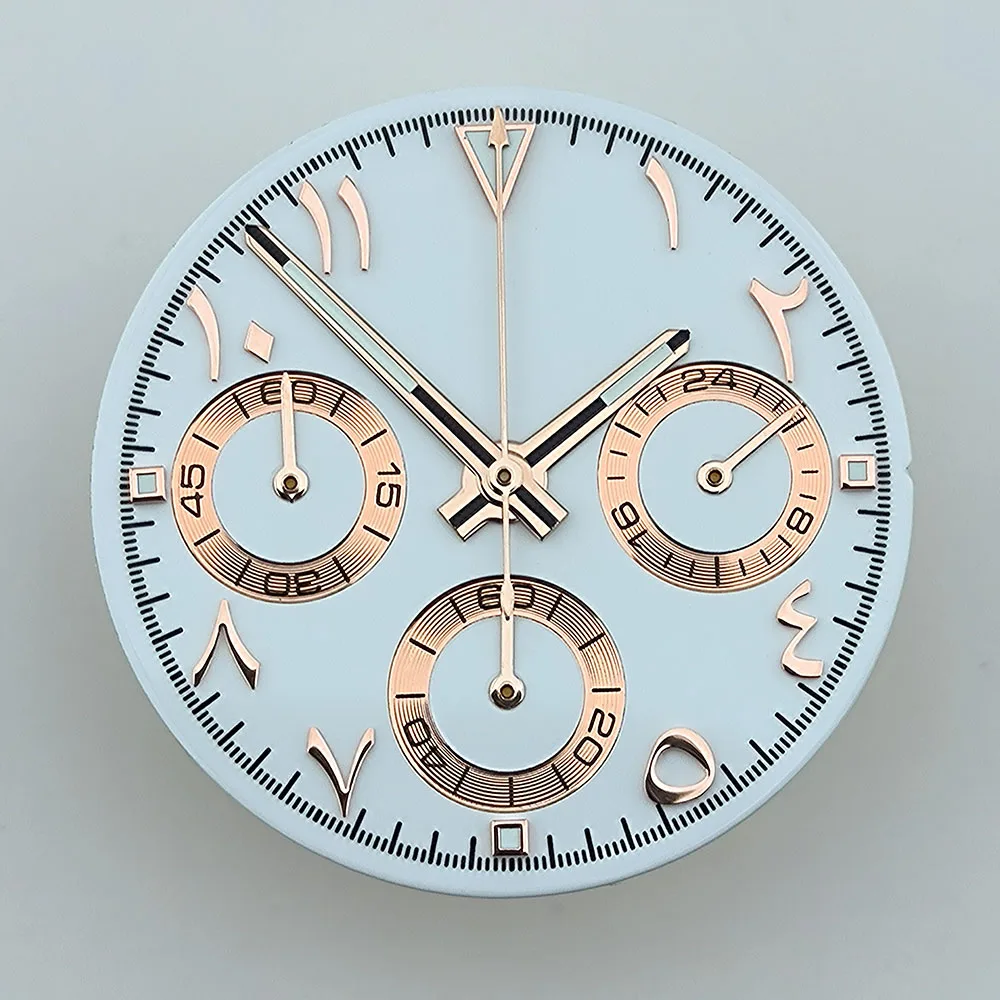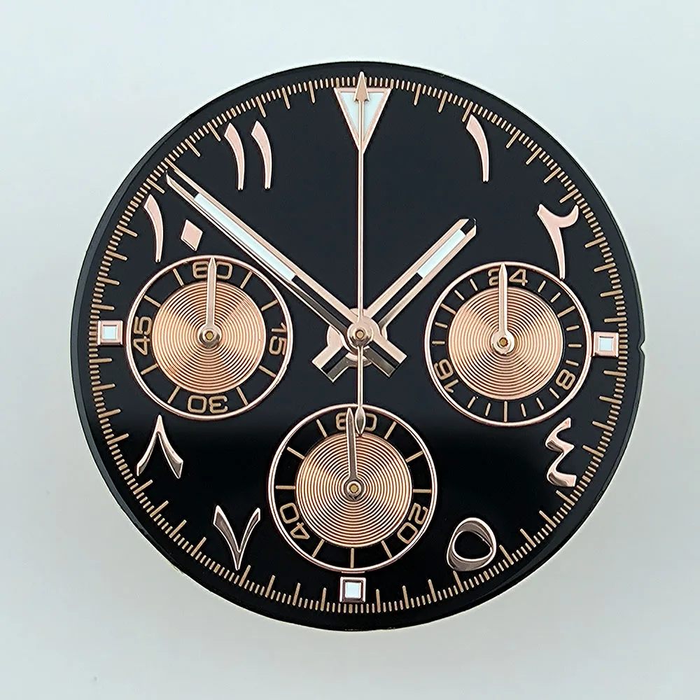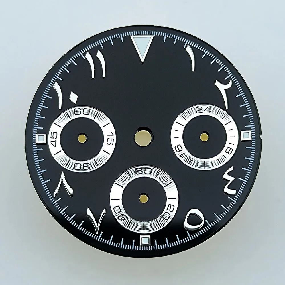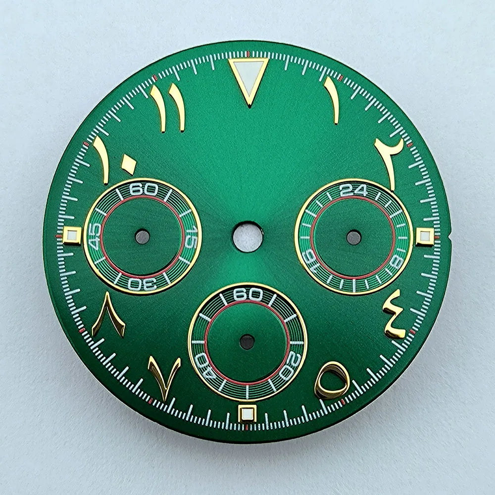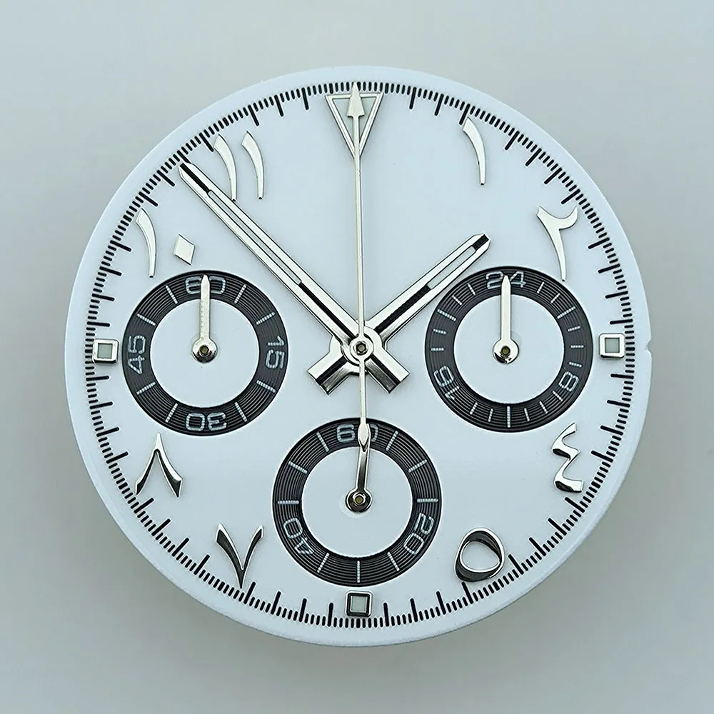 NEW VK63 chronograph dial Custom logo Arabic numeral panda dial 29mm green glowing fit VK63 quartz movement watch Repair tools