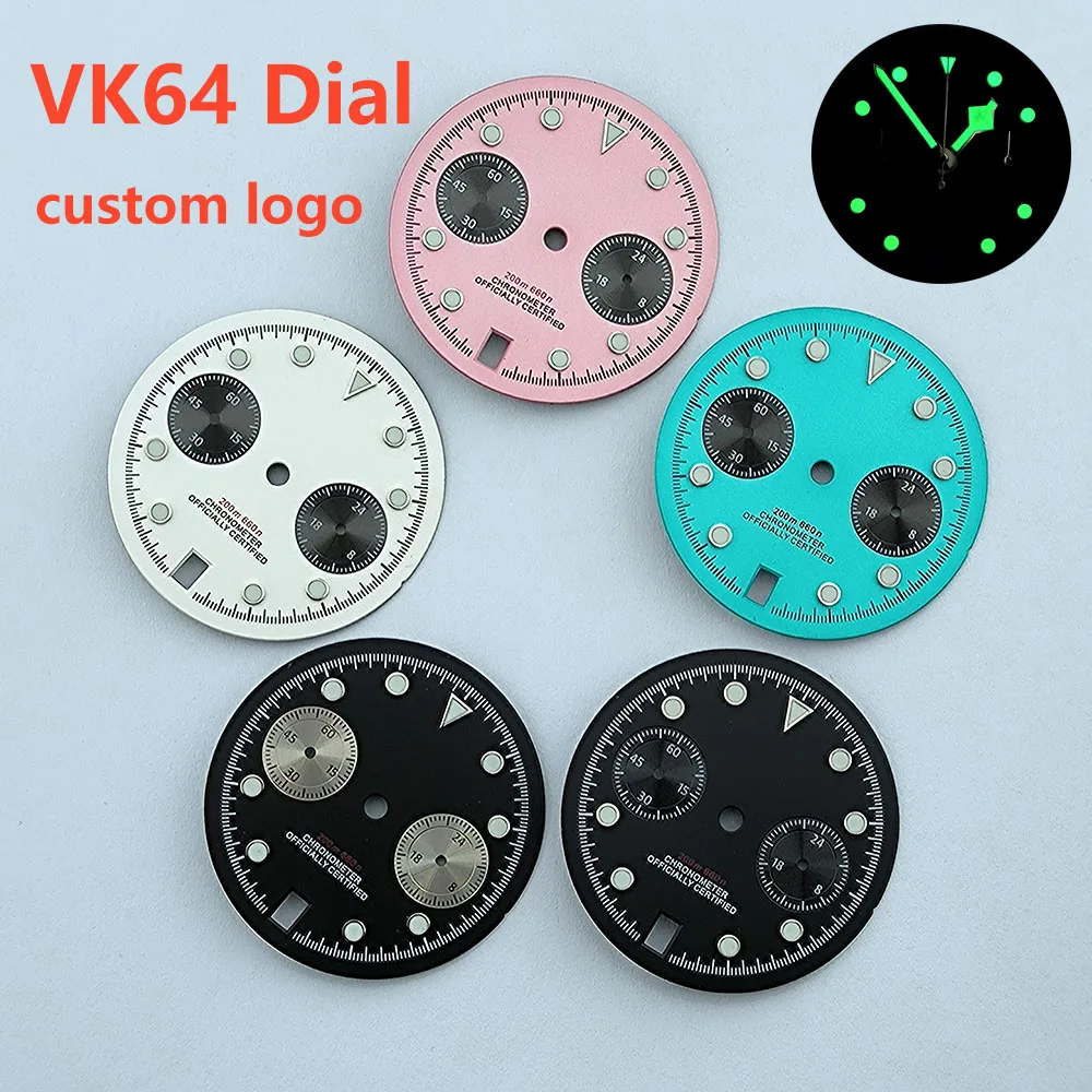 VK64 chronograph dial Custom logo Arabic numeral panda dial 29mm green glowing dial fit VK64 quartz movement watch accessories
